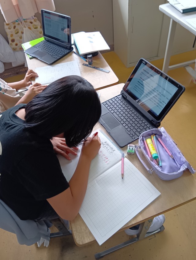 始めは全員が看護師の仕事について調べています。ノートにびっしりまとめています。