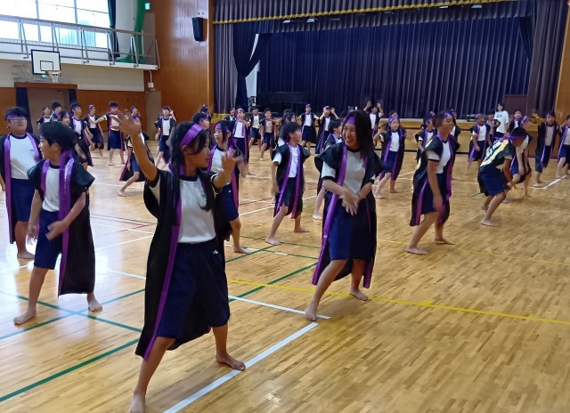 6年生は、今日、衣装を着て踊っていました。