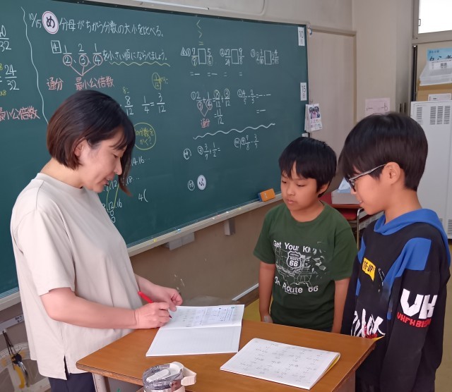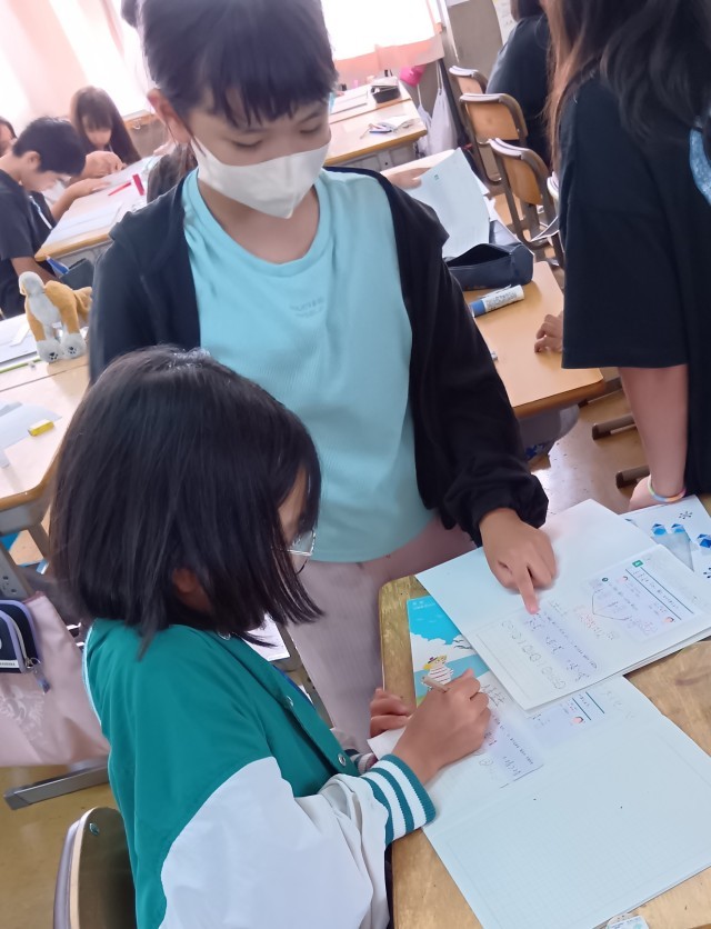 友だちと確認し合って、最後は自分で解いて先生に丸をもらいます。
