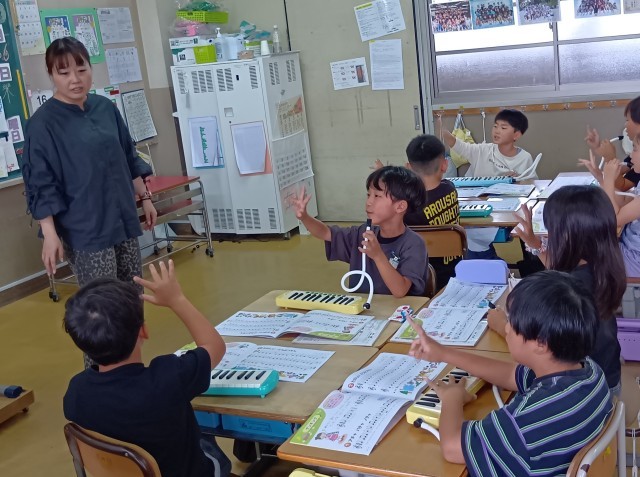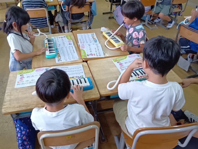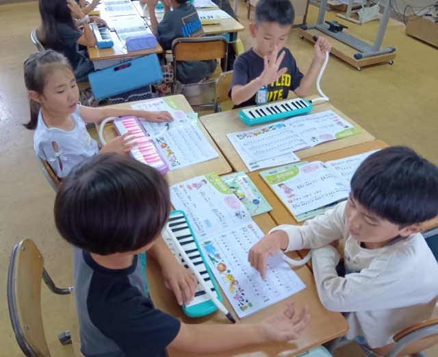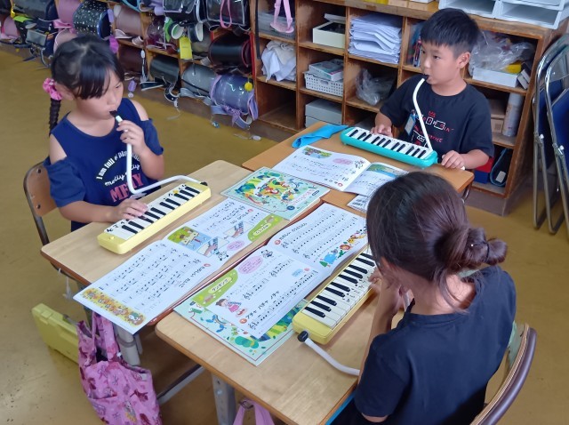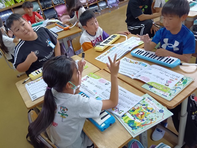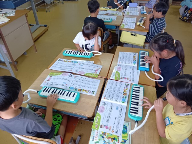 2年生の教室から歌声と鍵盤ハーモニカの演奏が聞こえてきました。