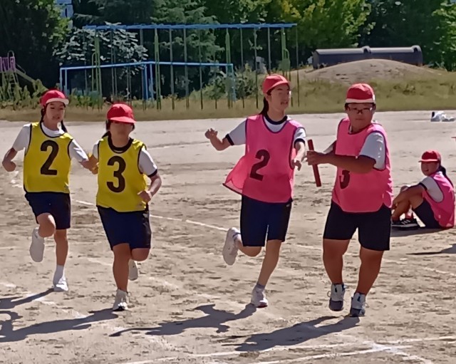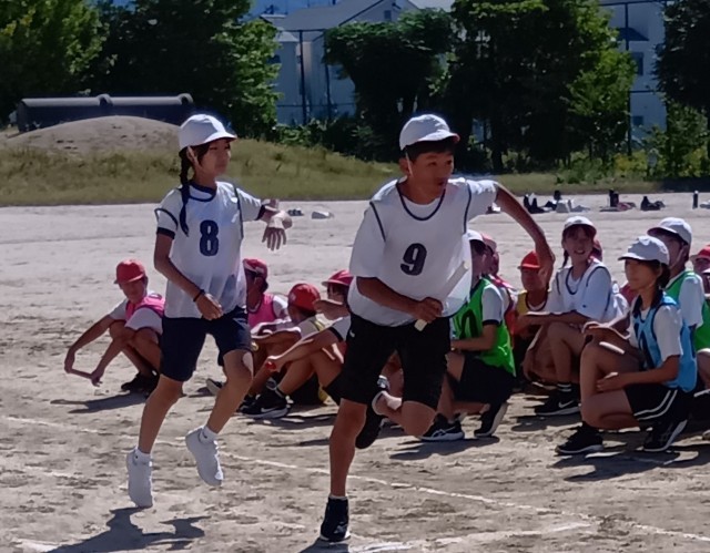 白組どうし、紅組どうしでのレースでしたが、全力疾走でバトンをつなぐ姿が美しい!