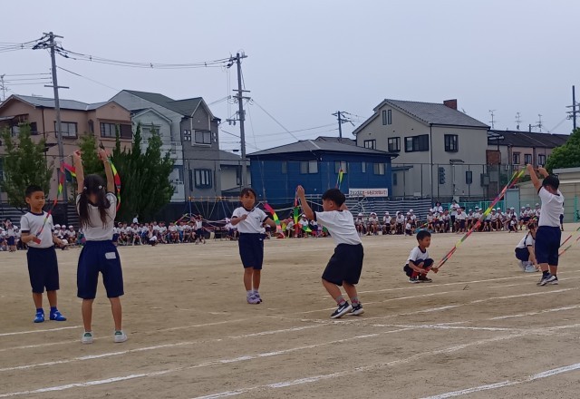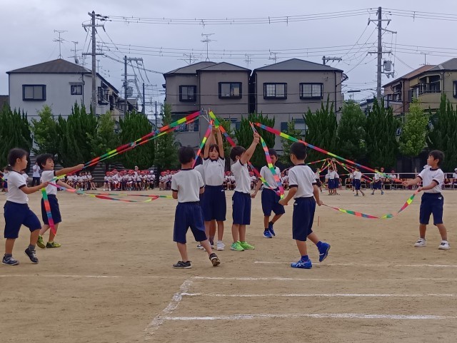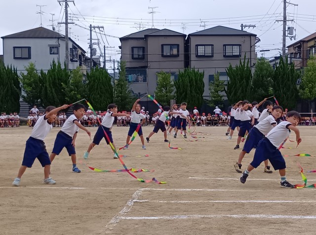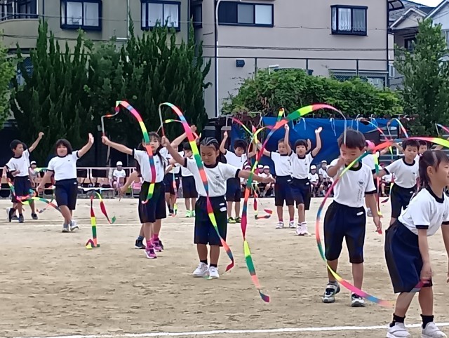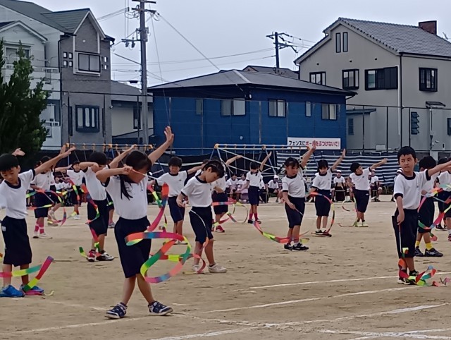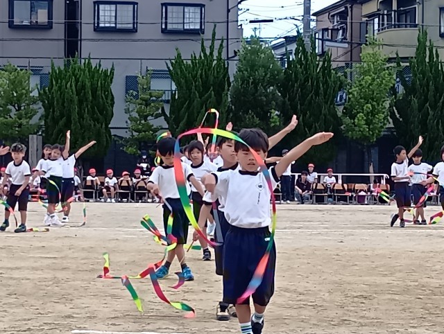 1年生のダンスは、いつも以上に大きく体を動かし、リボンを振っていました。