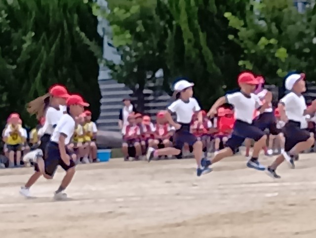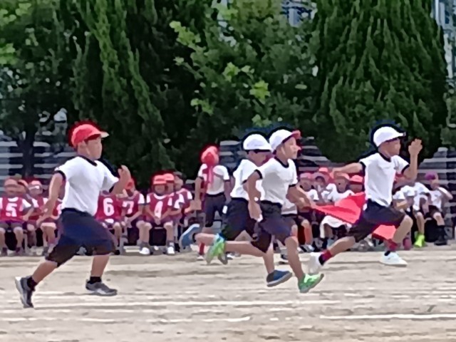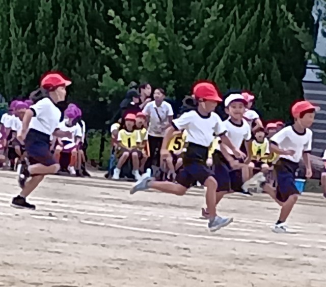 キラキラ☆1年生。初めての運動会、よく頑張りました。はなまるです。
