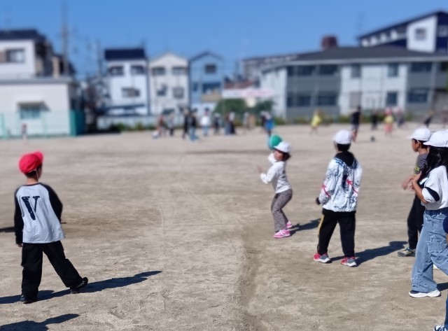 クラス遊びでドッジボールをしていたり、鬼ごっこをしていたりしました。
