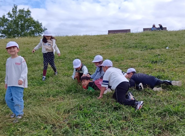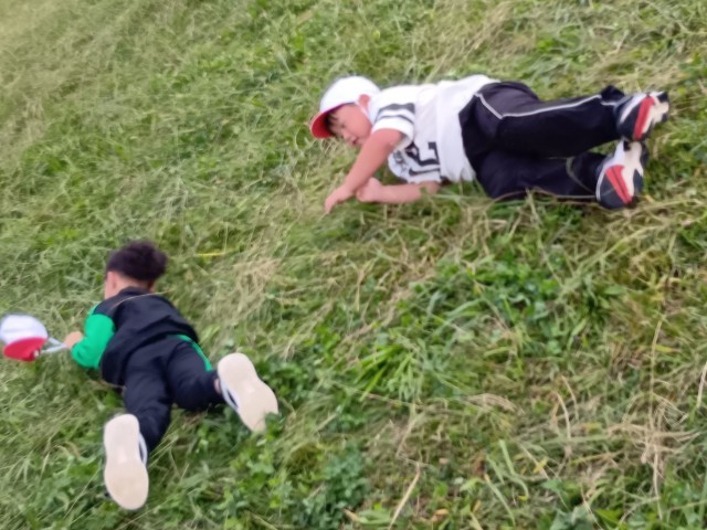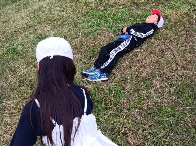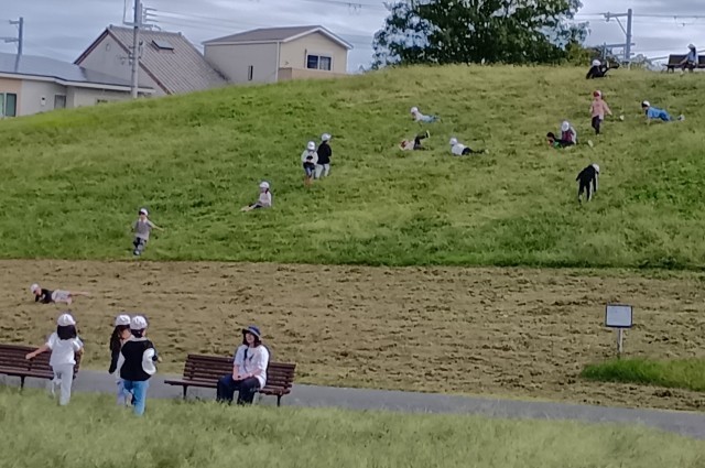他にも、芝すべりというか芝転がりを楽しんでいる人も多かったです。