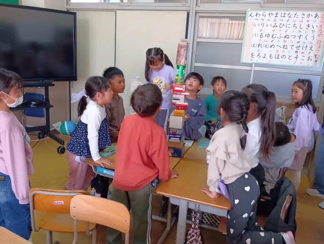 1年生の算数科ではかたちあそびの学習が始まりました。