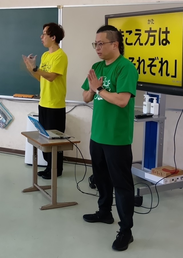 今日は、ゲストティーチャーとして、『手話エンターテイメント発信団oioi』さんが来てくださいました。