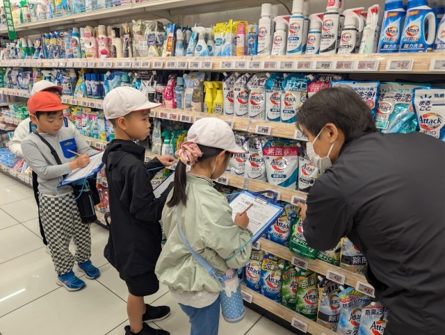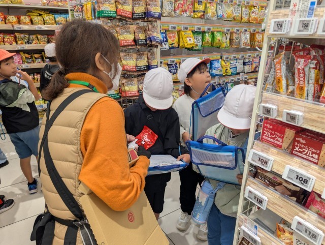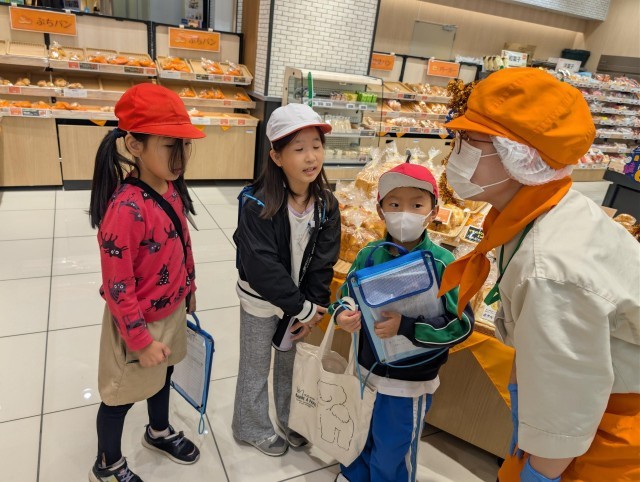 「値段の横の数字は何ですか?」「どんなパンがよく売れますか?」など自分たちの気になったことを質問し、ワークシートにまとめていました。
