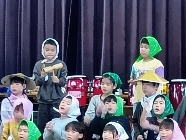 国語で学習している「かさこじぞう」を音楽物語で表現します。