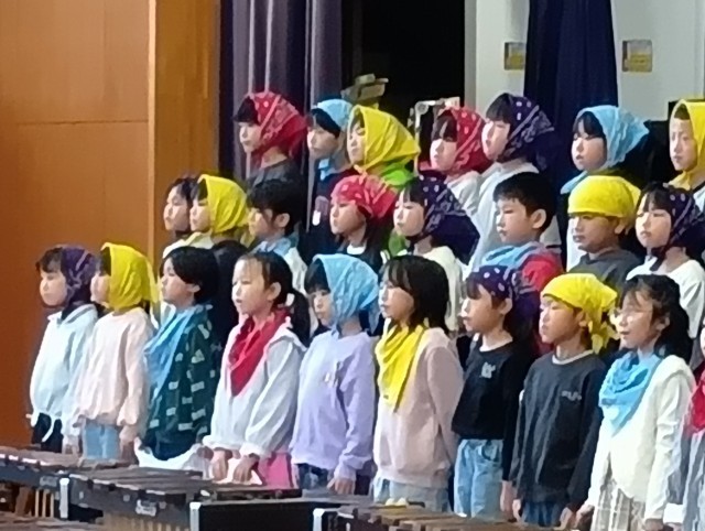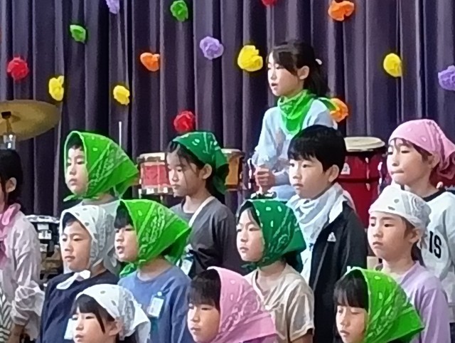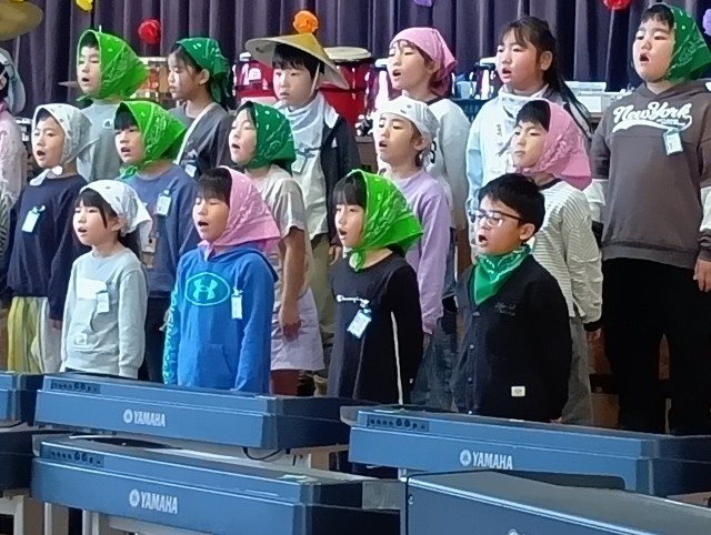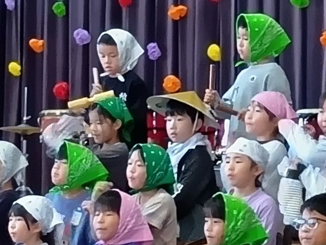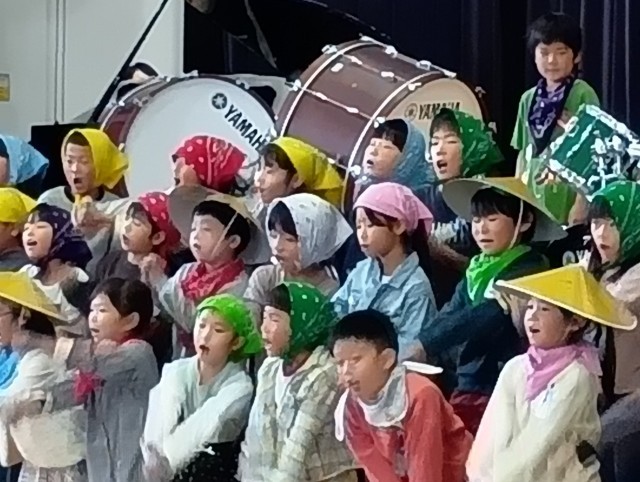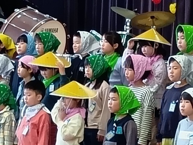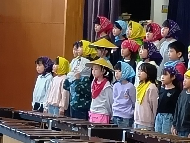 2年生は、今日も元気いっぱいのセリフと歌声で、「かさこじぞう」のお話を伝えます。