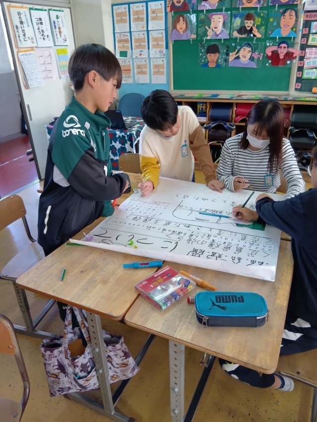 6年生では、平和学習を壁新聞にまとめる作業が進んでいます。