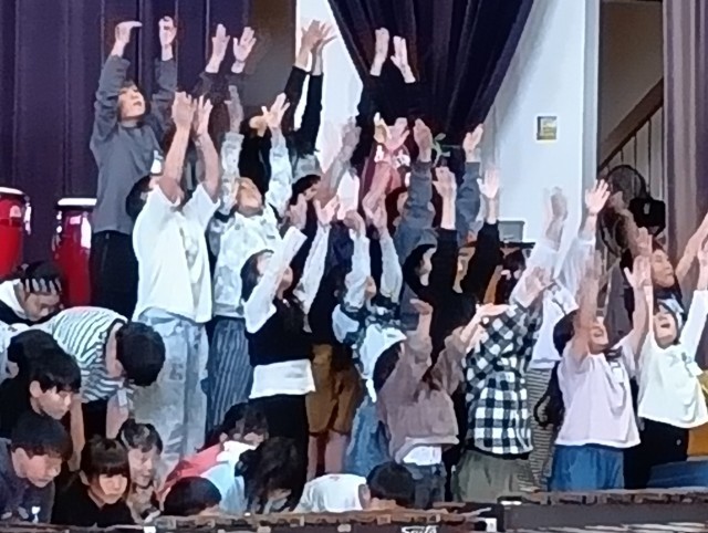 曲紹介のあと、「紅蓮華」のピアノ伴奏に合わせて、見事なボディーパーカッション。