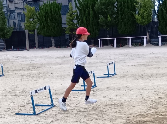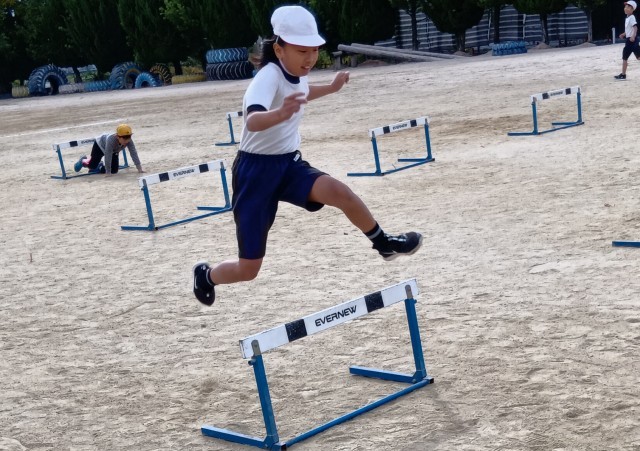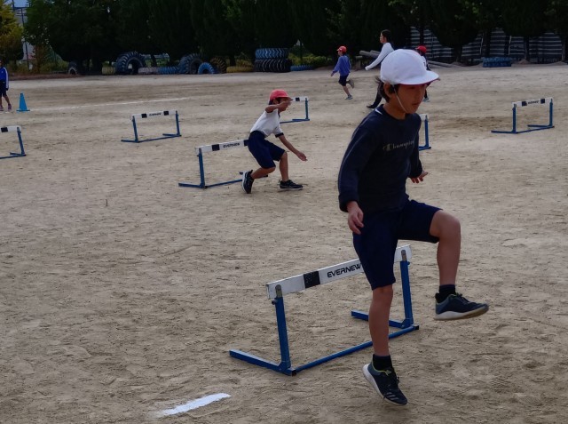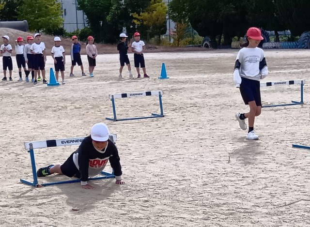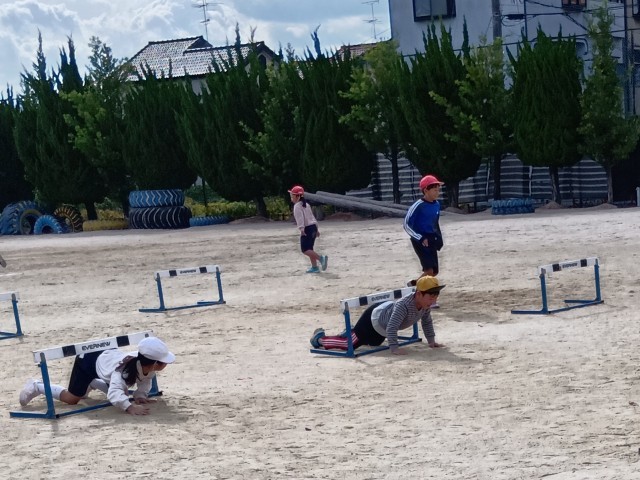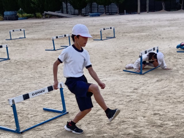 ハードルをまたいだり、くぐったり、どちらもO.K!楽しんでいました。