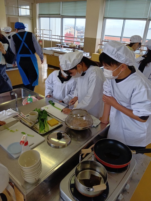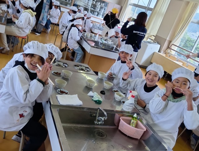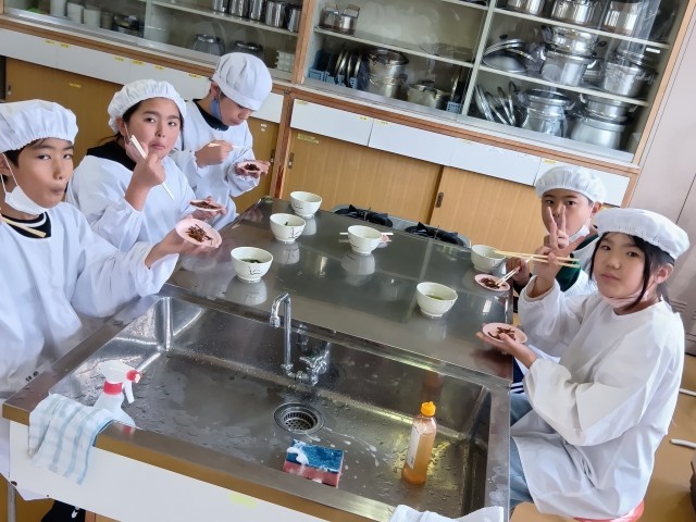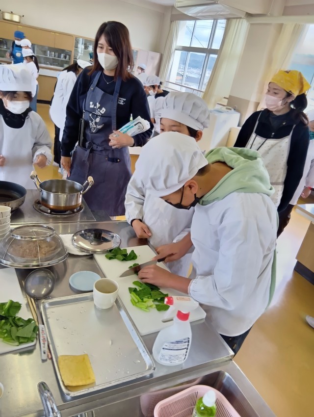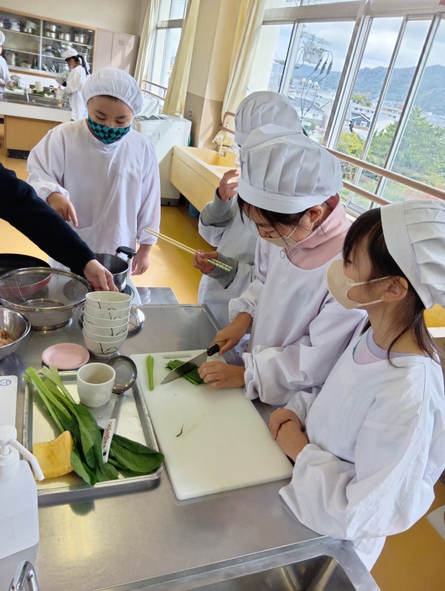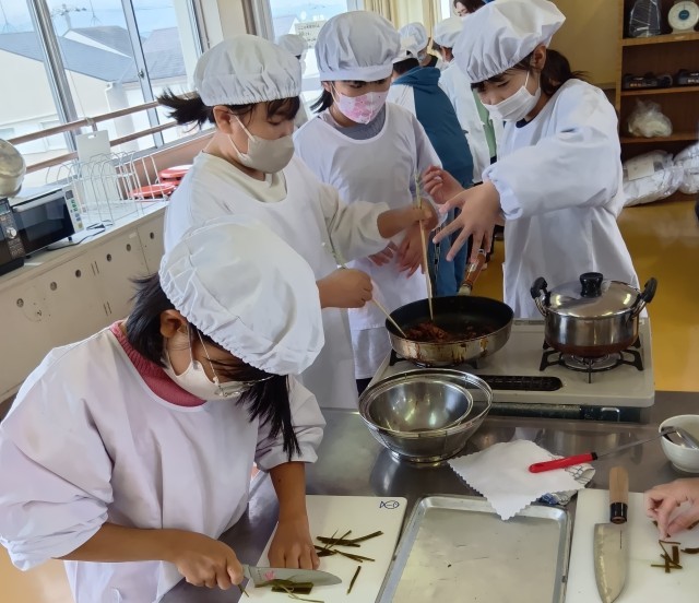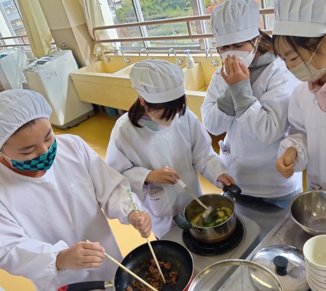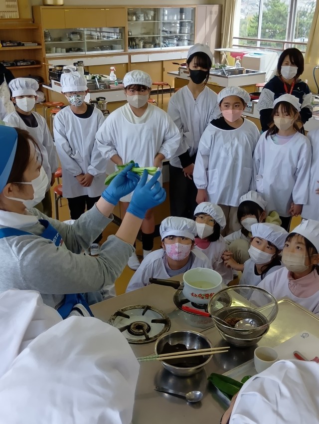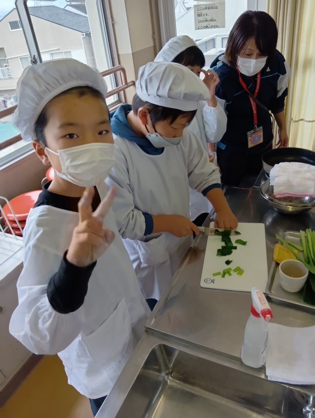 5年生では、大阪ガスの方が出前授業に来てくださって、調理実習をしました。