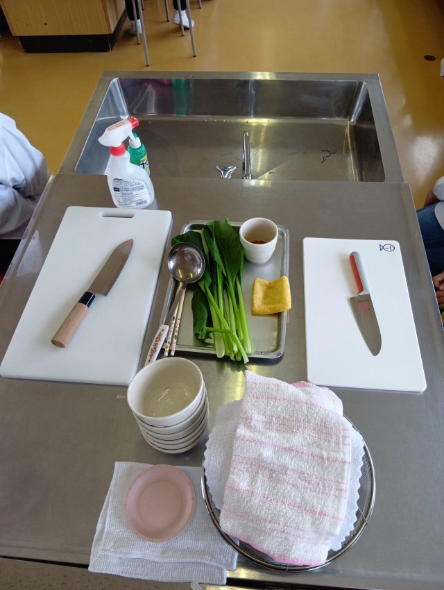 そして、調理開始です。昆布とかつおでお出汁をとり、小松菜のお浸しを作りました。