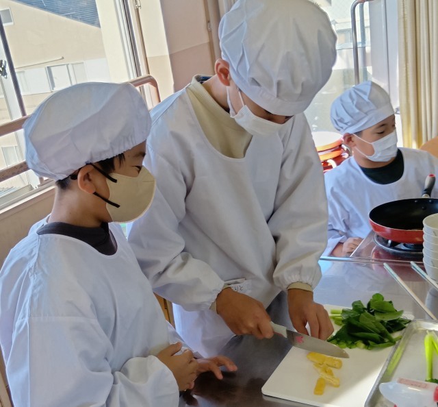 ちゃんと班の中で交代しながら、材料を切っていきます。