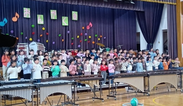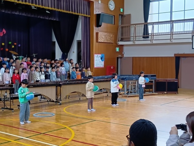 1年生の保護者に来ていただいて、学級閉鎖で延期していた音楽会を行いました。