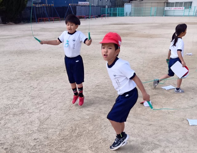 「先生、見てて~」とたくさんの子が、跳ぶところを見せてくれました。