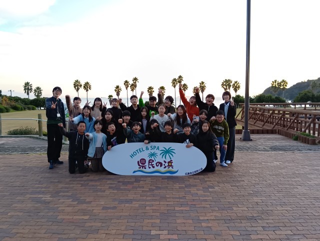 今日、宿泊する 県民の浜 輝きの館に到着です。