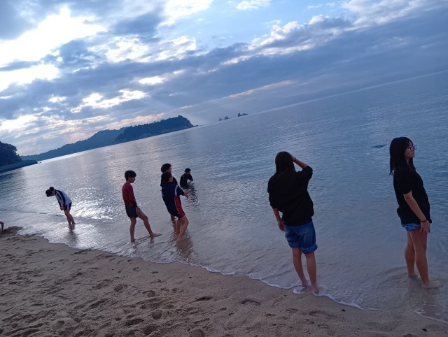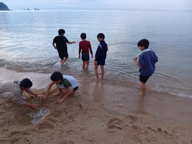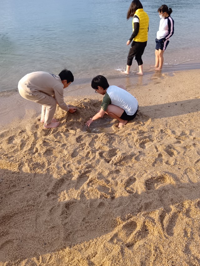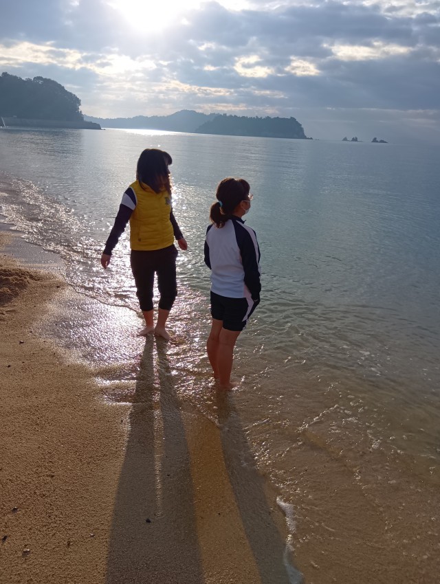 いいお天気で暖かく、大半の人は、足だけ海に入ったようです。