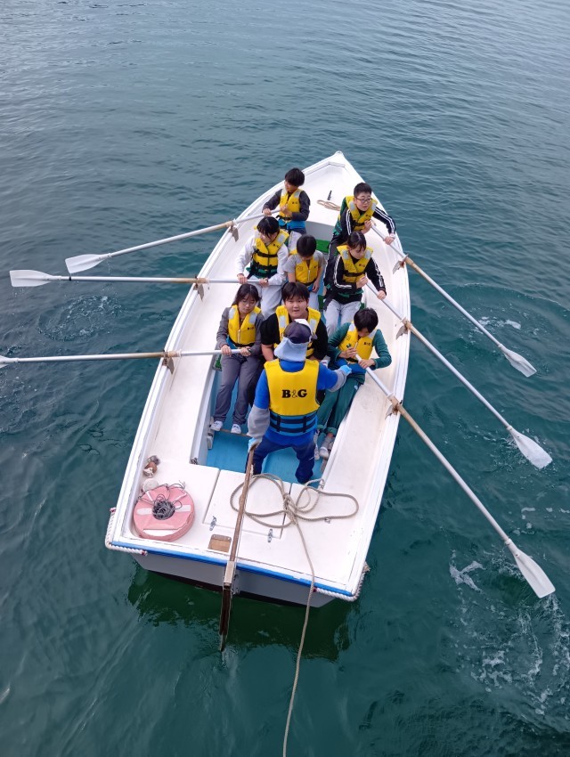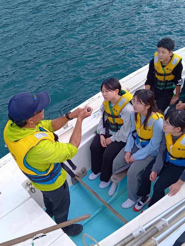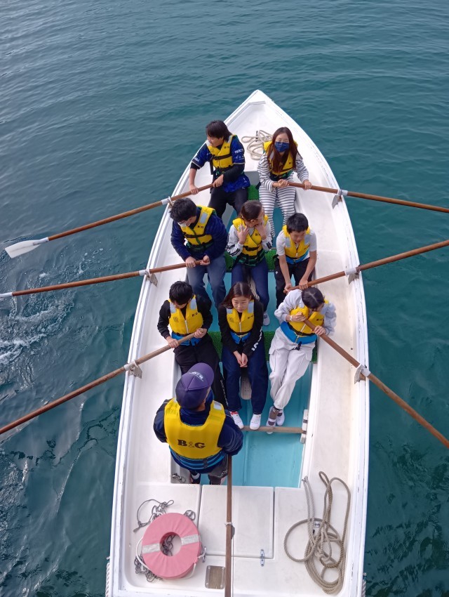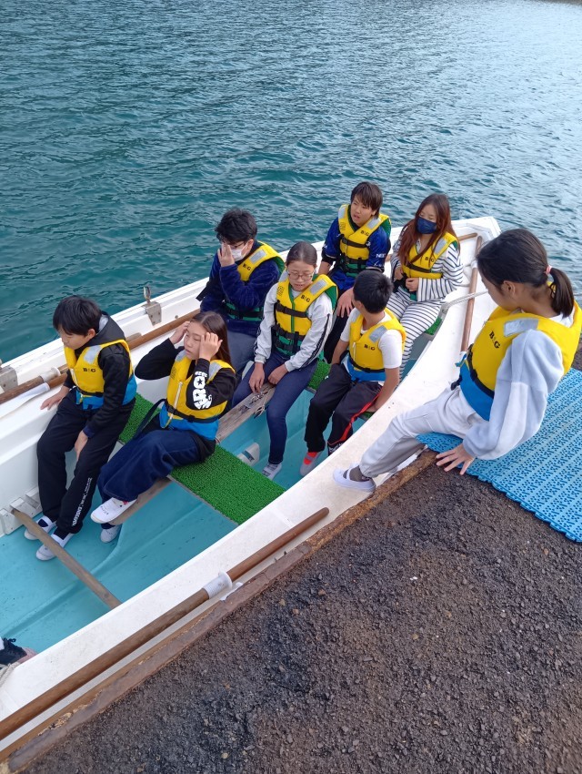 同じくライフジャケットを着て、カッターに乗り込みます。