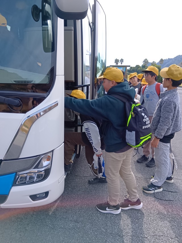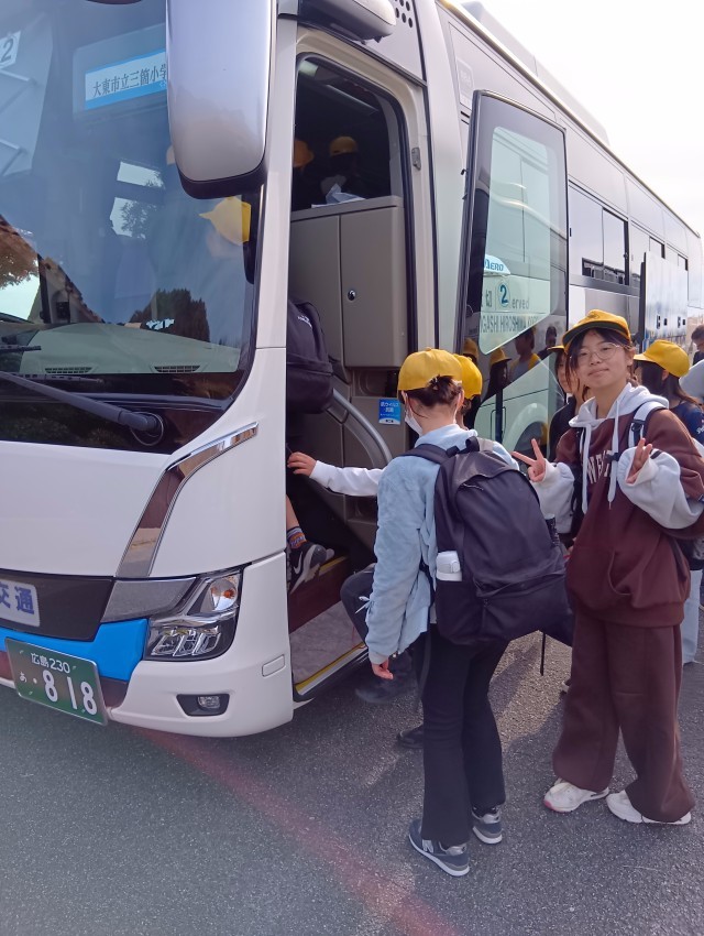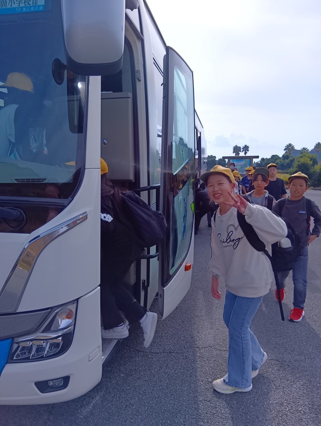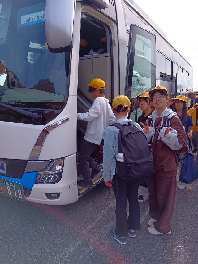 それぞれのバスのなかで、おやつタイムに合わせて、ピタリ賞やカッターレースの勝者に、賞品が渡されました。