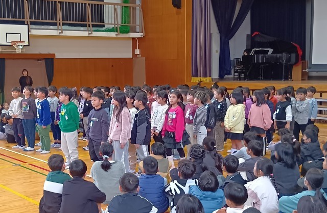 1年生は、「ぼくがラーメンたべてるとき」の絵本の読み聞かせから、平和について考えました。