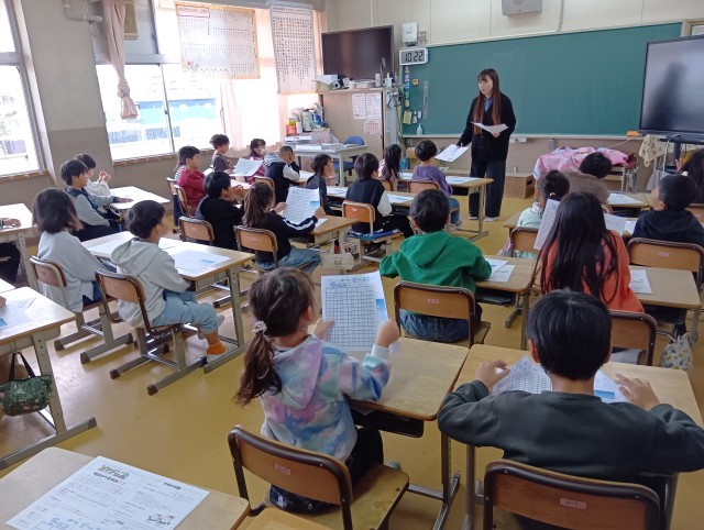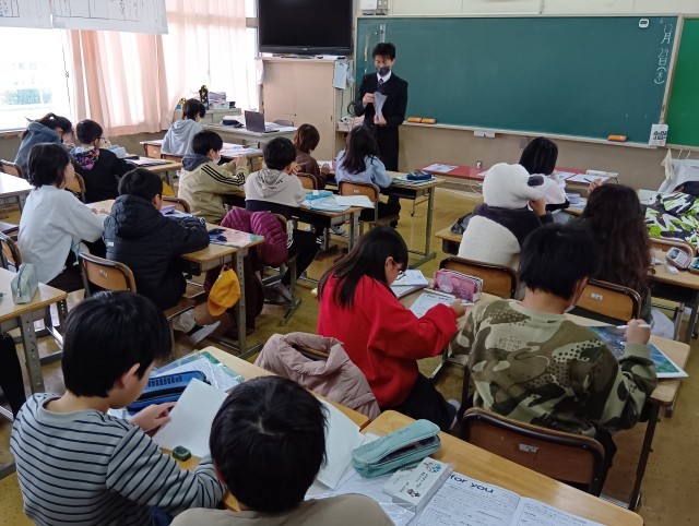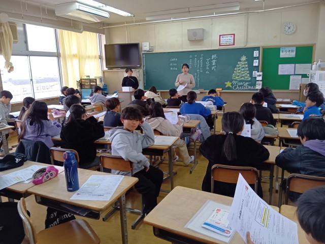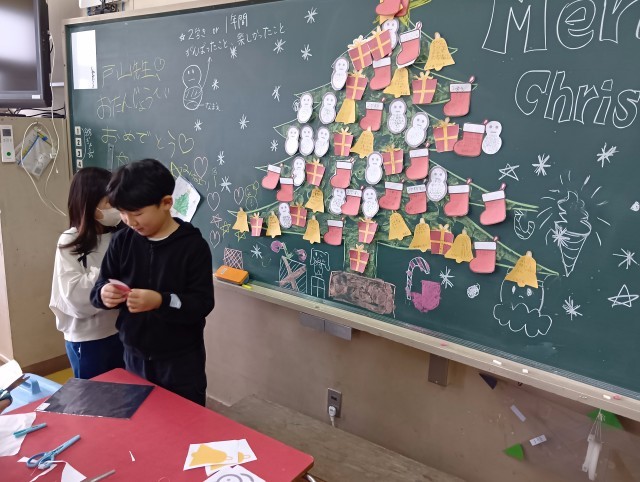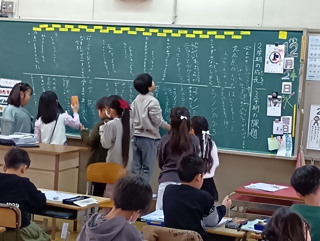 待っている間に、2学期に頑張ったことや3学期に頑張りたいことを書いているクラスもありました。