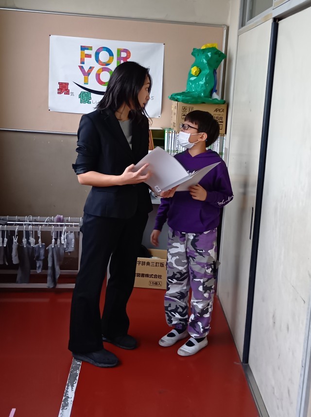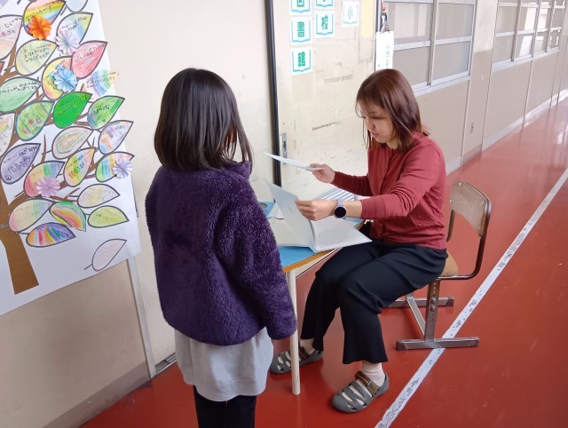 お手紙や宿題の確認をしていたり、のびゆく子(通知票)が渡されたりしていました。