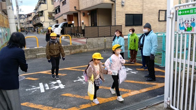 民生委員さんも門で子どもたちを迎えてくださいました。