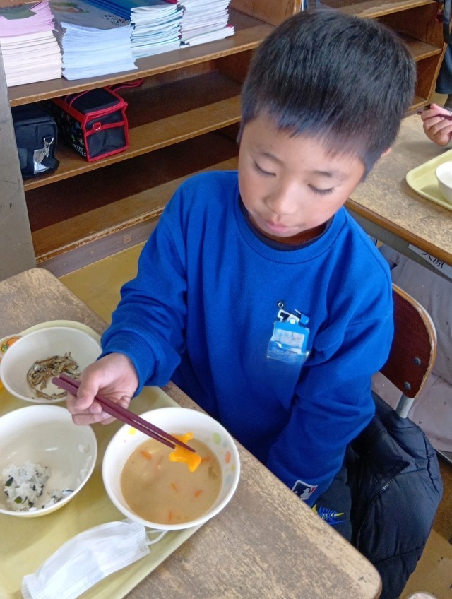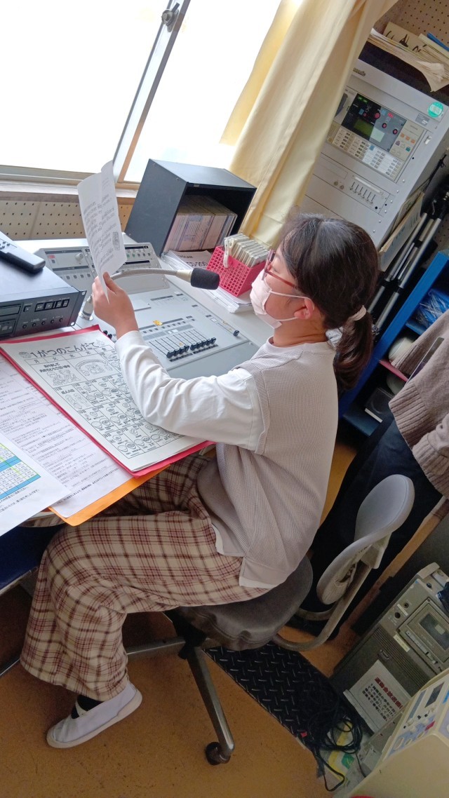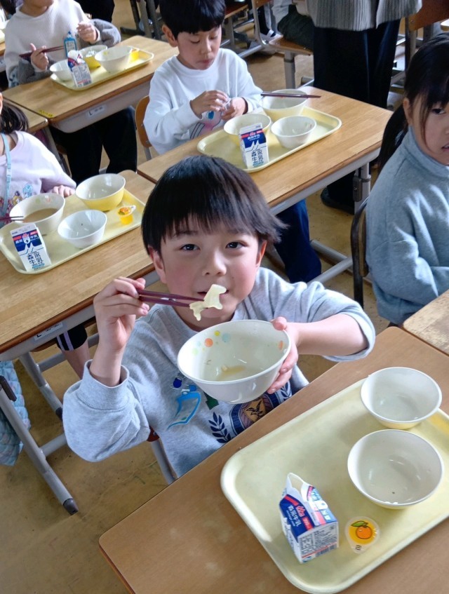 給食委員さんがきょうの献立のお雑煮について放送で説明します。