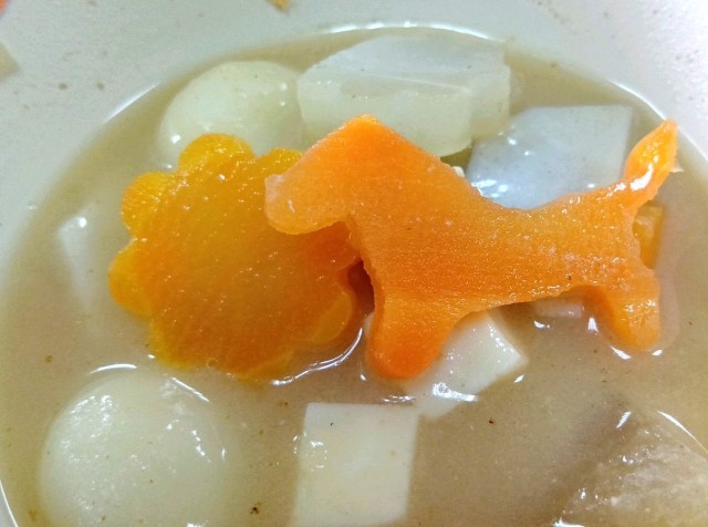 午年ということで、調理員さんが、馬?や花の形をたくさん作って入れてくれたそうです。