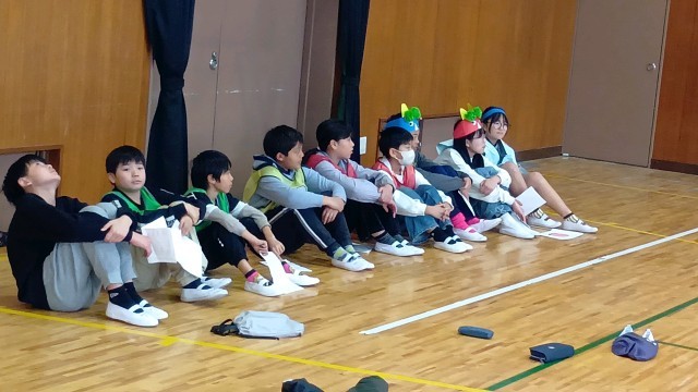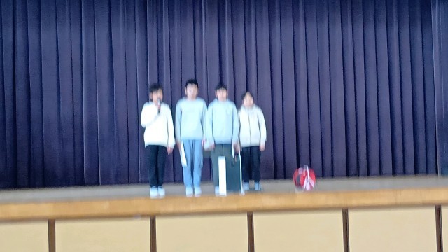 給食委員会は、次の集会で発表する給食感謝集会の舞台練習です。