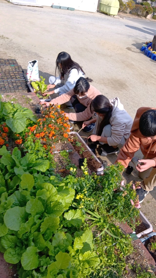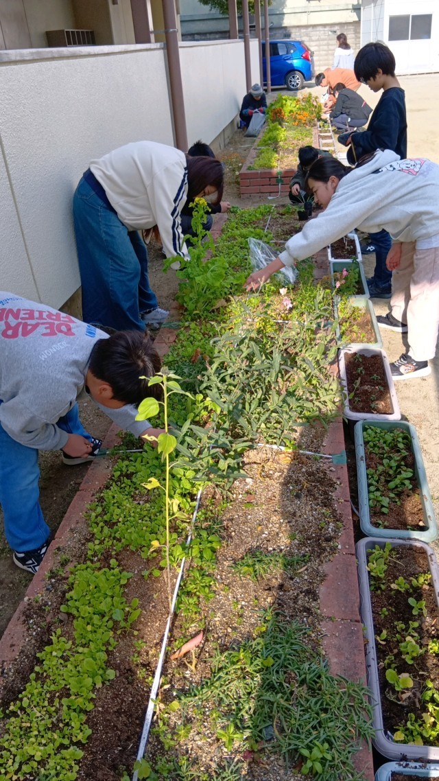 生活美化委員会は、花壇の手入れ。