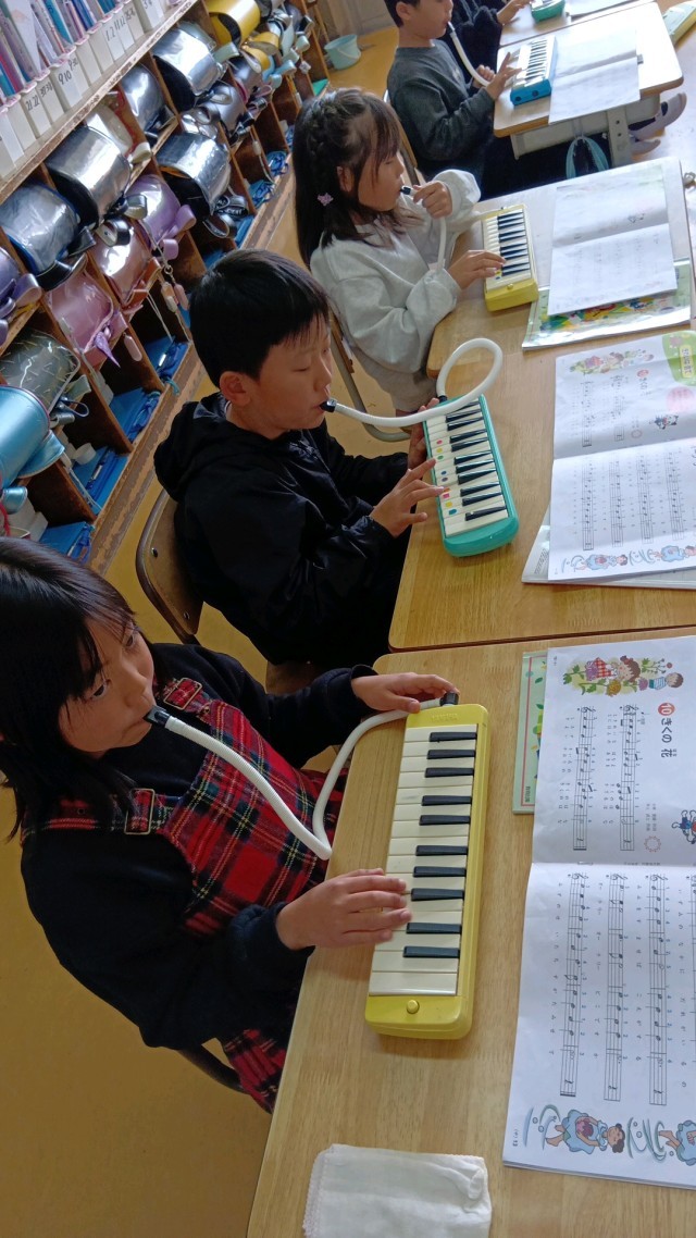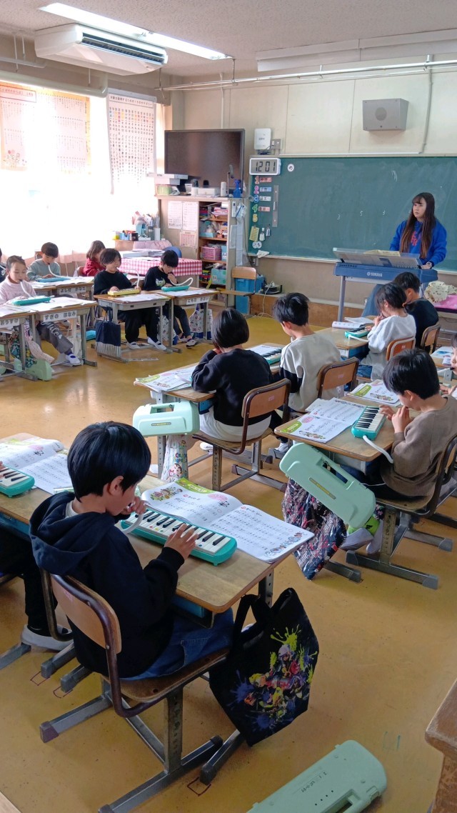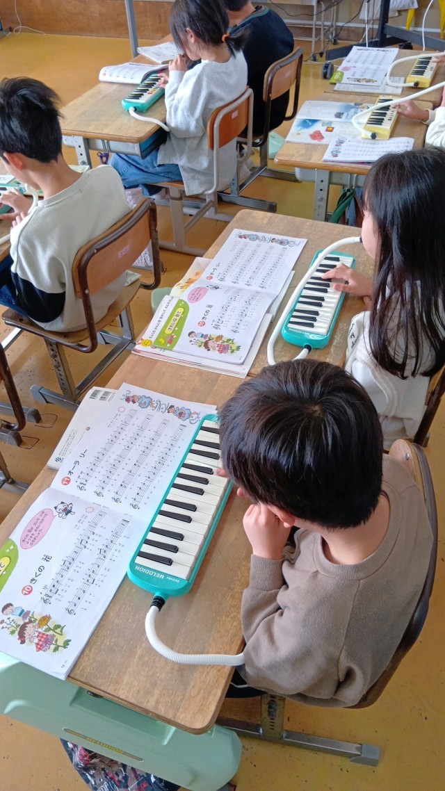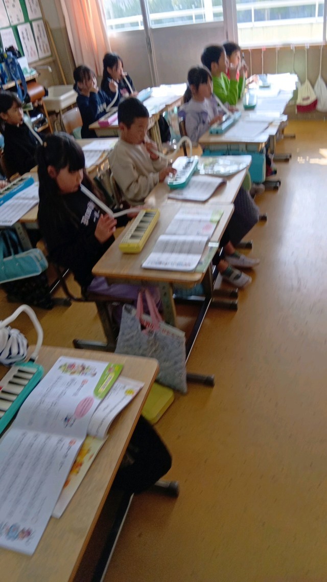 2年生の音楽です。「1,4,3,4,・・・」先生の声が聞こえます。