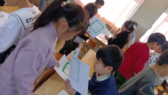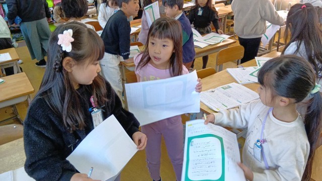 書いたものを5人の友だちに聞いてもらいます。