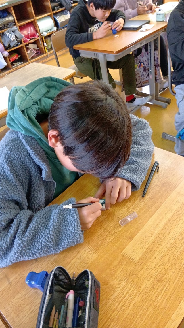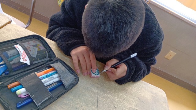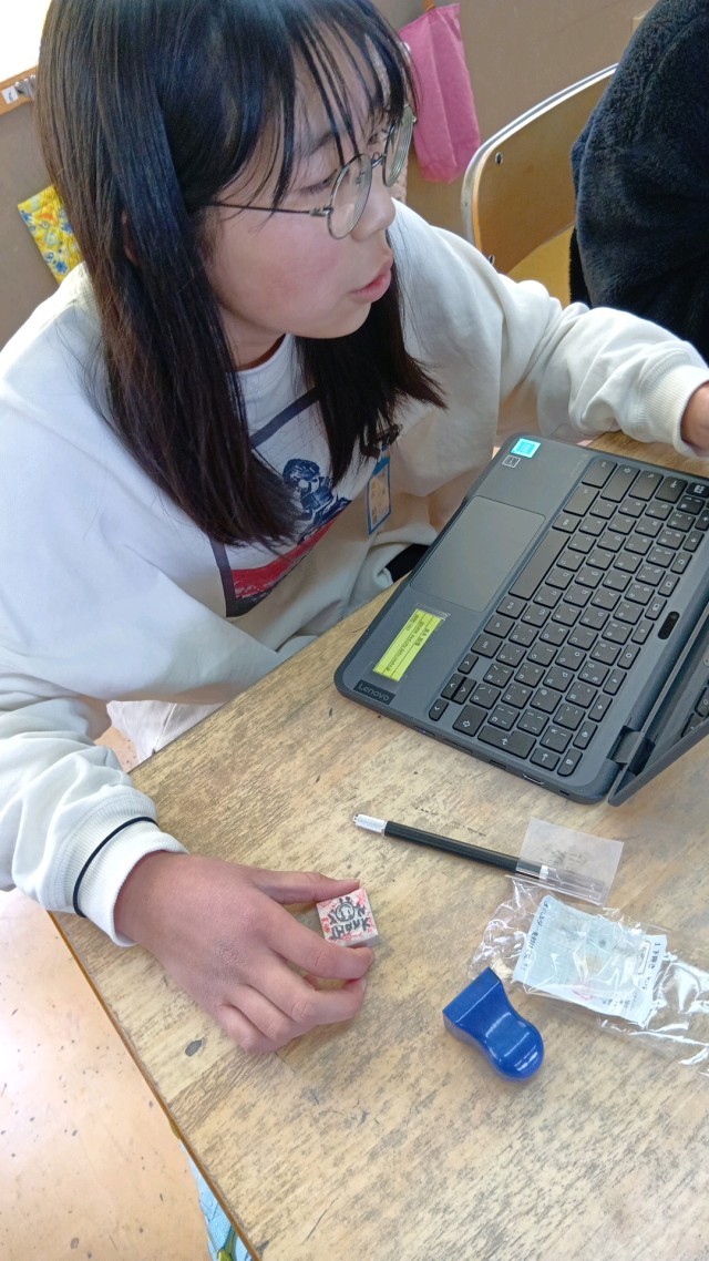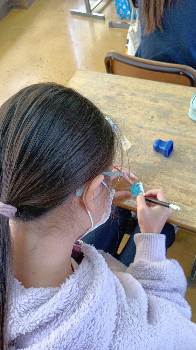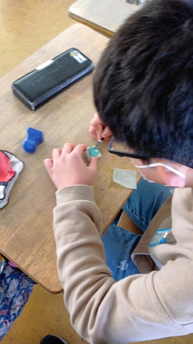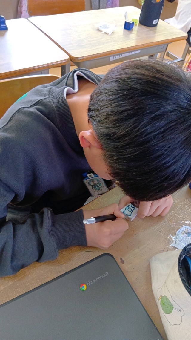 6年生は、図工で消しゴムハンコを作成中です。