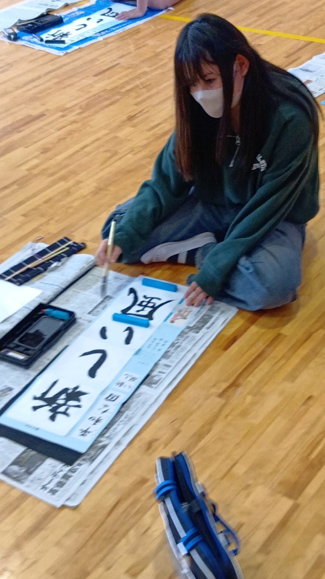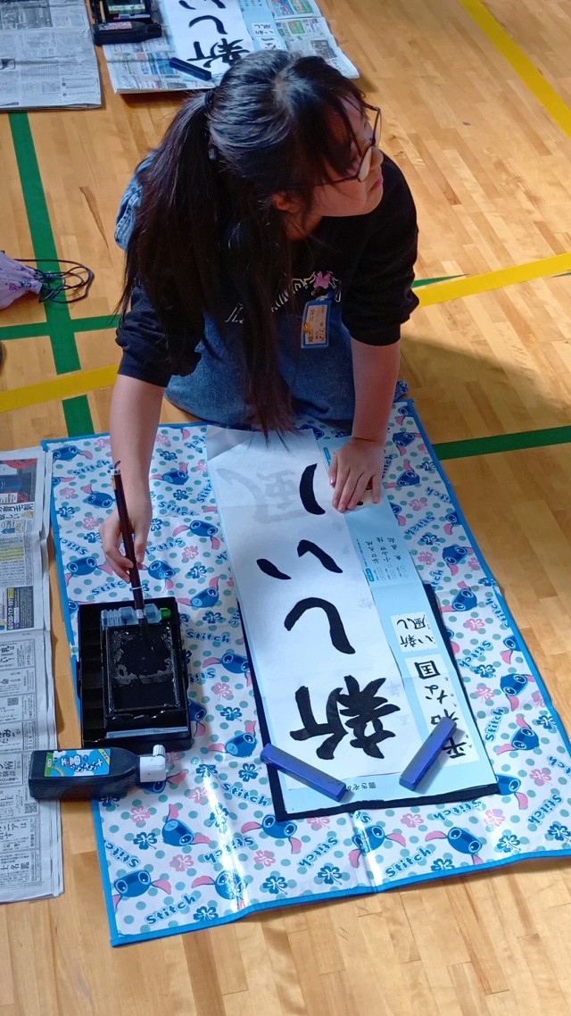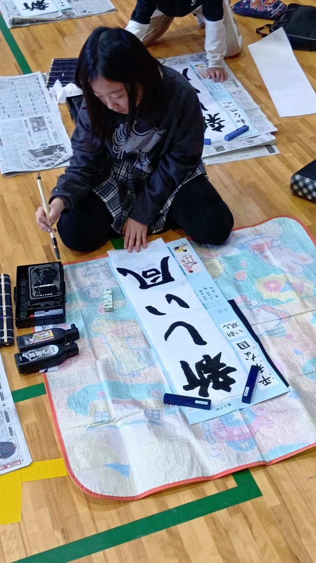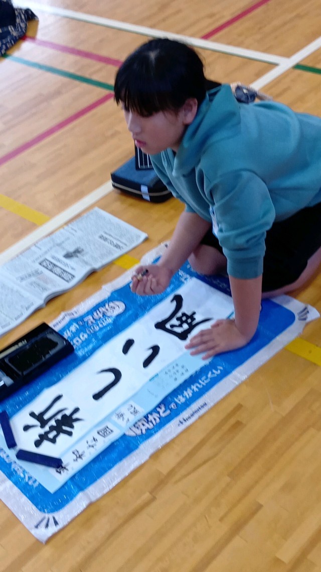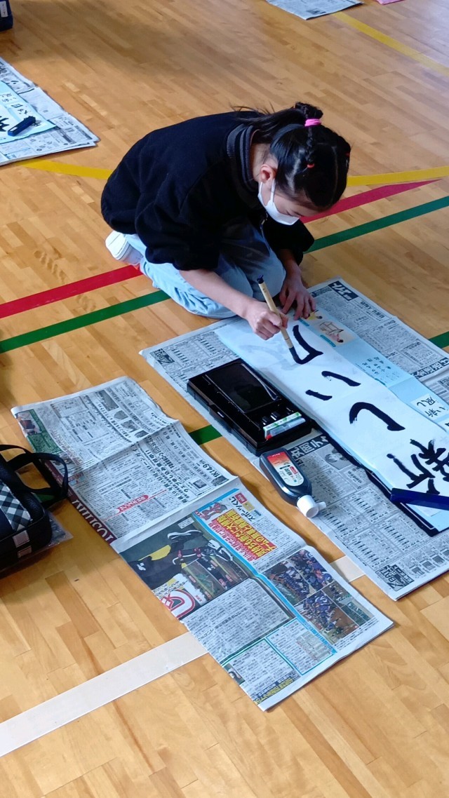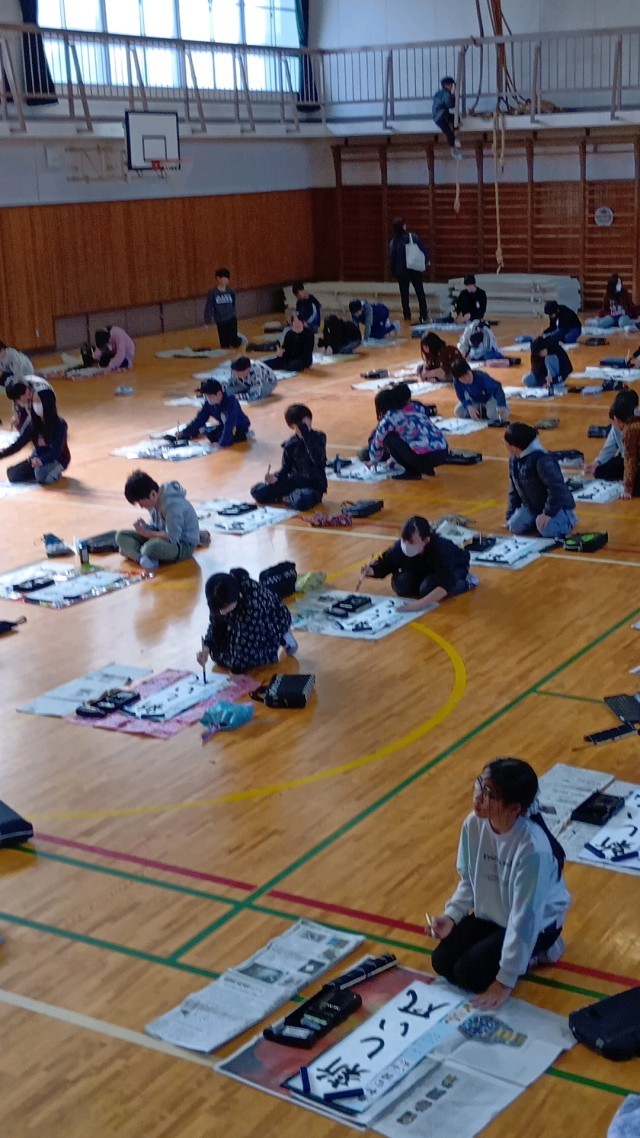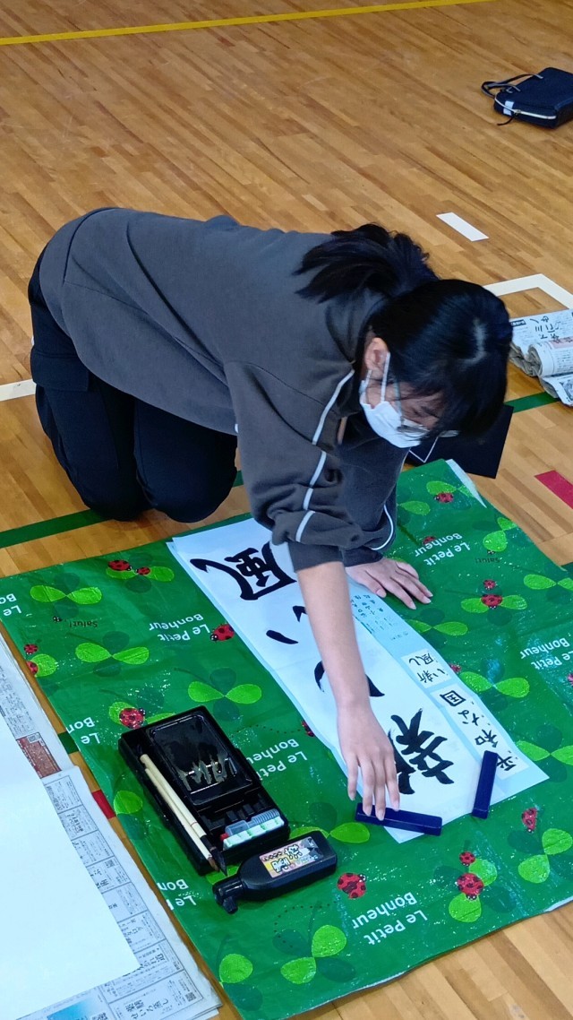 いつもの習字とは違う環境での書き初めに、のびのびと書けた人が多かったようです。