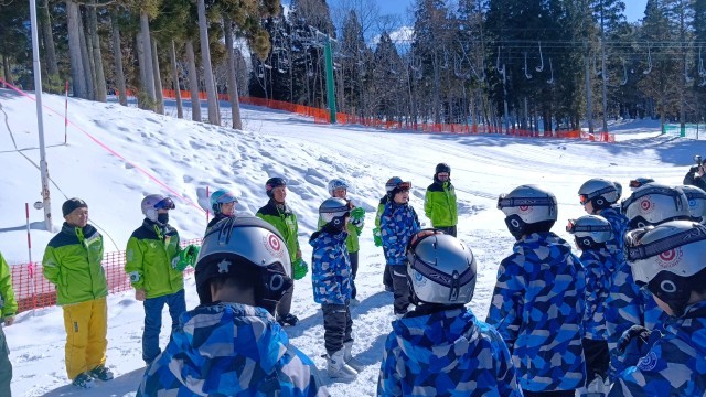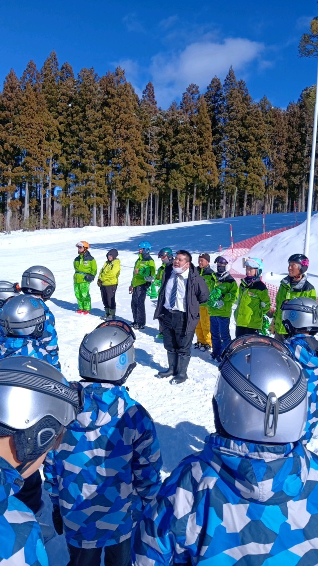 ホテルの方とインストラクターさんにしっかりあいさつをして、スキー学習のスタートです!