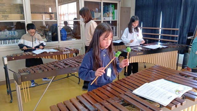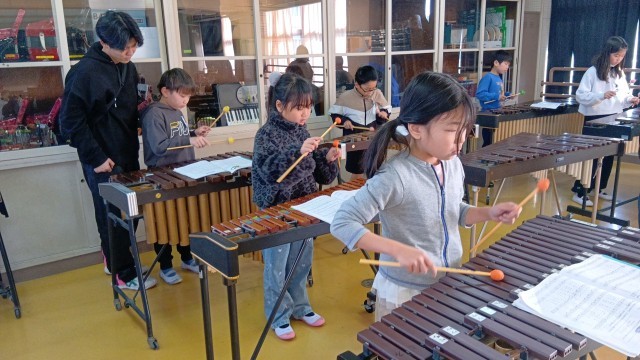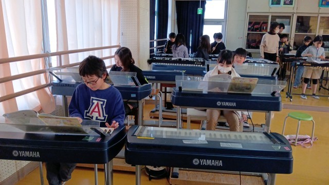 半分ずつ交代で、自分のやってみたい楽器を演奏しています。