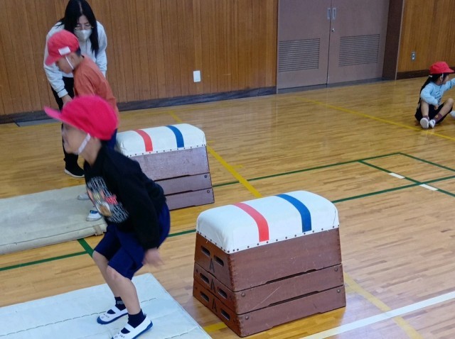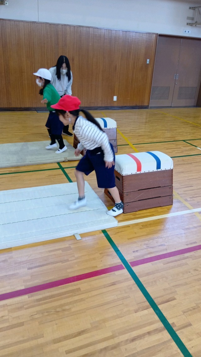 とび箱は、たくさんの人が跳べるようになっていました。あともう少しで跳べそうな人もあきらめずに頑張りました。
