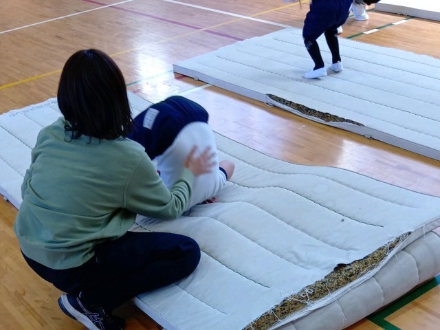 マットでは、後ろ回りを頑張っていました。