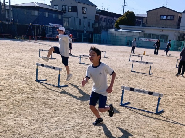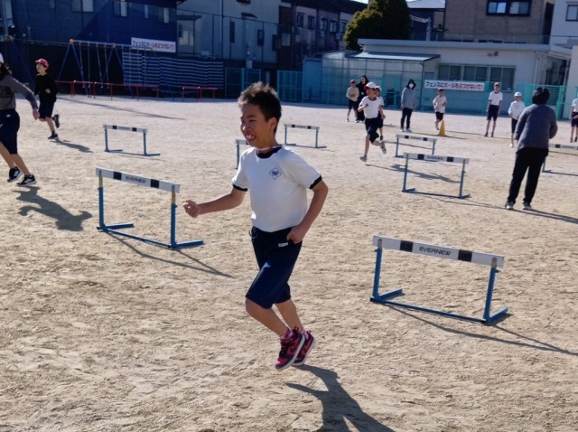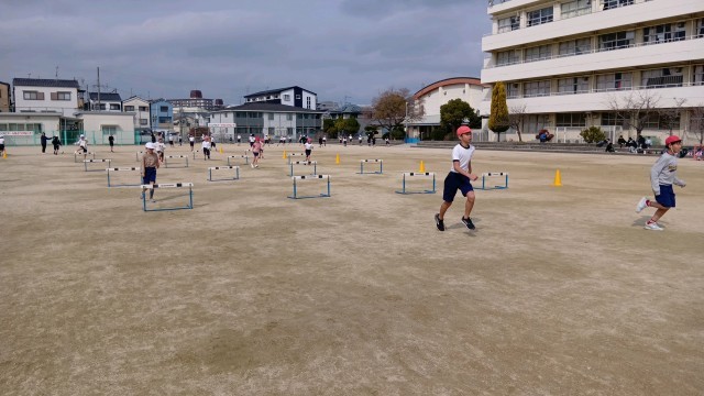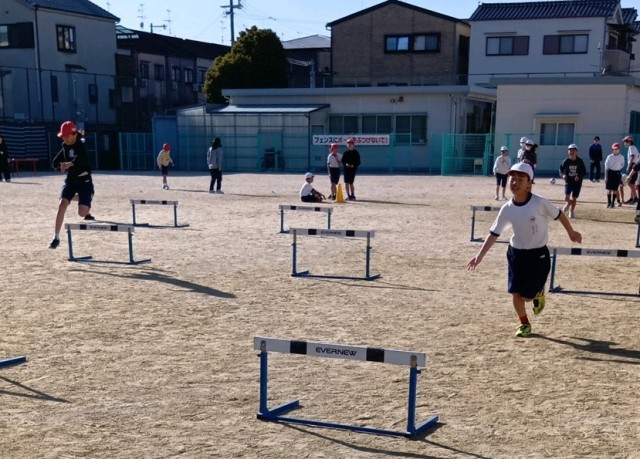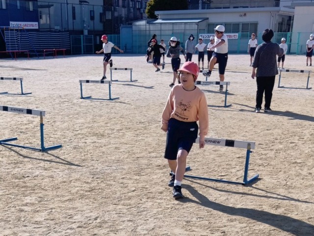 片付けるときも、1人1台ずつハードルを持って体育倉庫へ。