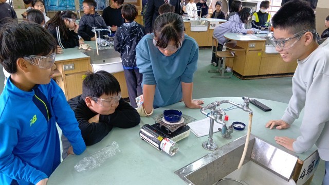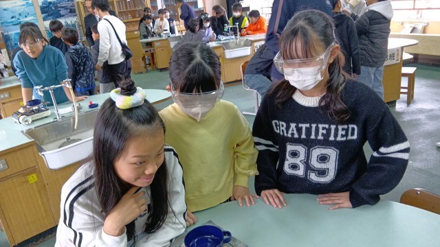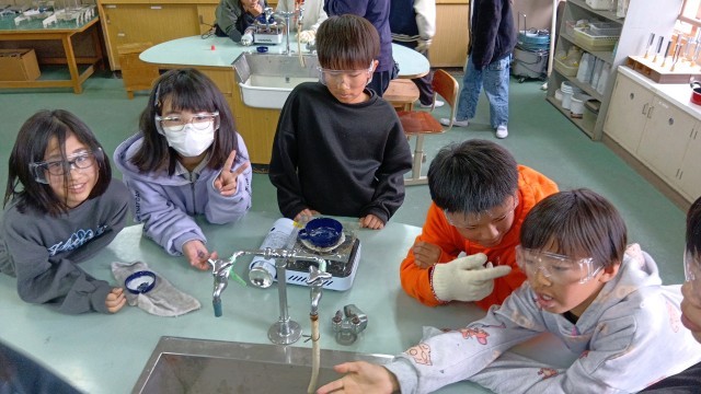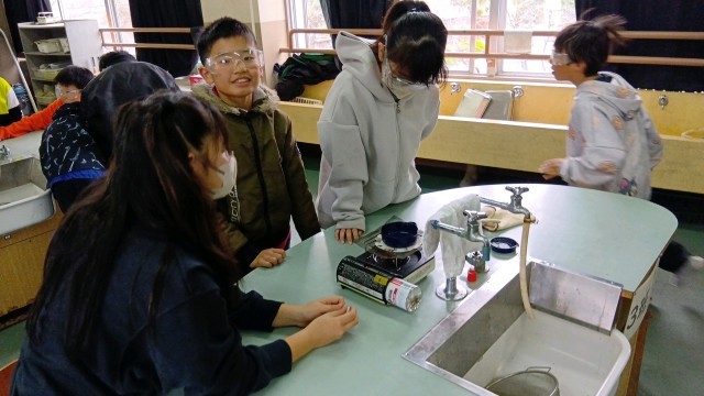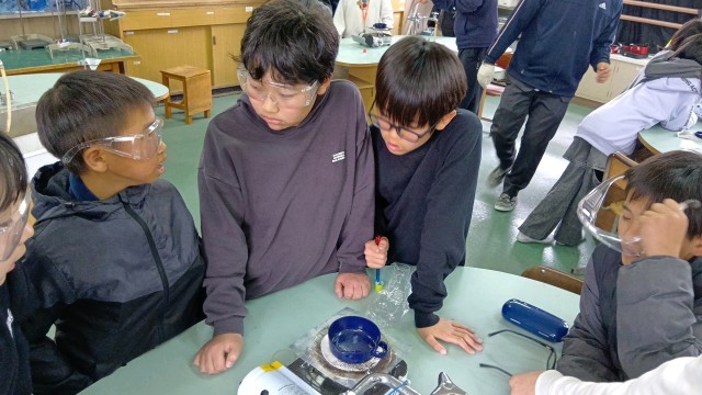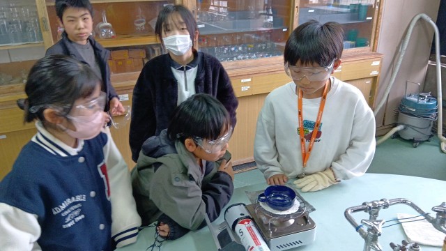 水分を蒸発させたあと、残ったものは何かを確かめていました。