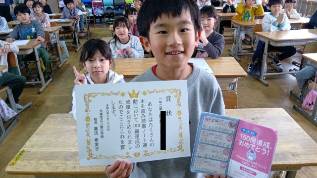150冊達成した人が1年生と5年生。1年生では初です。