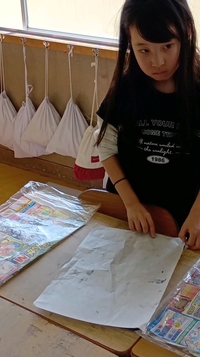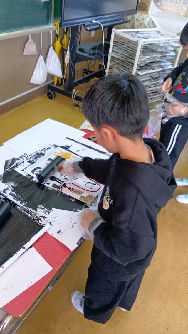 2年生は、版画をしていました。