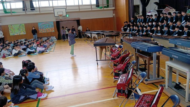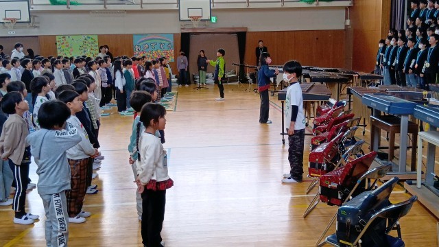 1年生は、たくさん一緒に過ごしてきた6年生に「ただありがとう」の歌とボディーパーカッションで「おめでとう」を伝えます。