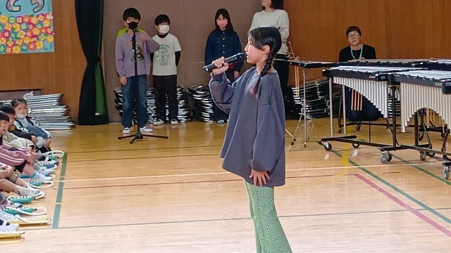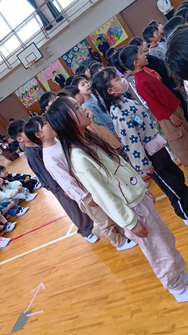 素晴らしい歌声が体育館いっぱいに響きます。次は、各学年からの発表です。