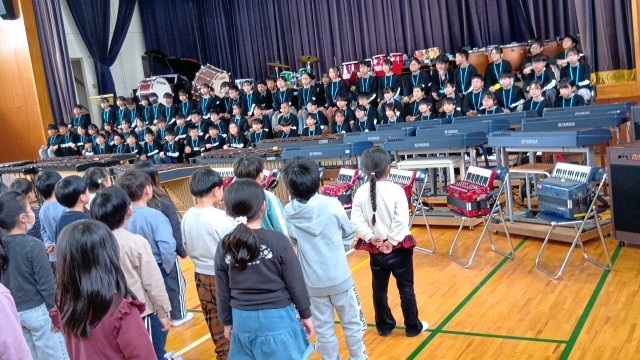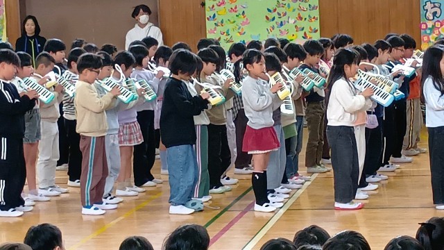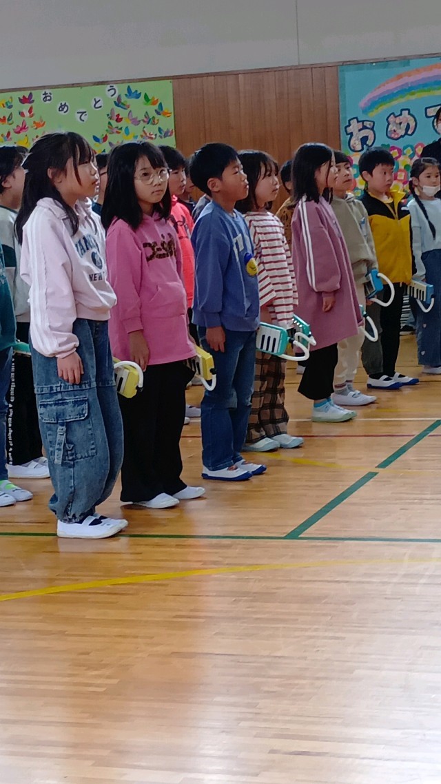 2年生は、「とてと」の歌と鍵盤ハーモニカの演奏で「おめでとう」と「ありがとう」を伝えました。
