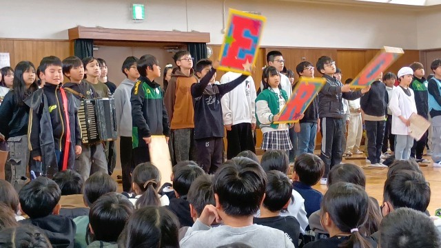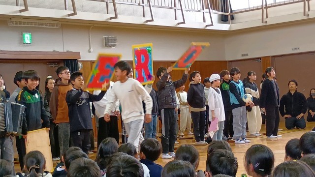 そして、5年生からは、6年生の学年テーマである「HERO」になぞらえて、6年生にたくさんの「ありがとう」を伝え、歌を贈りました。
